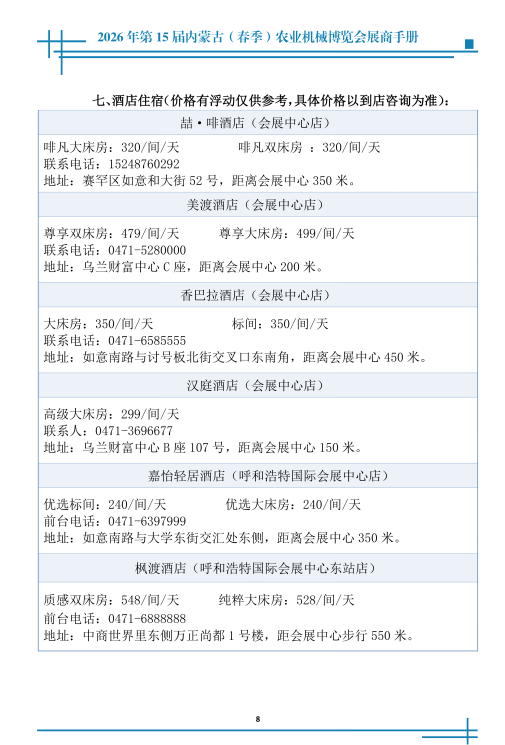 本届展会展览面积达3万平方米,精心规划了农业机械、畜牧机械、林果机械、农业适用工程机械、无人植保器械、农机配件等6大展区,约翰迪尔、凯斯纽荷兰、CLAAS、道依茨法尔、中国一拖、潍柴雷沃、徐工集团、临工农机、呼市分院、东风农机、常发集团、中机美诺、勇猛机械、新疆牧神、山东思代尔等国内外众多领军企业同场竞技。与此同时,鑫阳农机、如浩农机、宁夏富水泽、喜旺农机、智硕农机、宏英农机等众多农机经销企业,也将内蒙古春季农机展视为年度行业例会,全力给予展会大力支持。展会将同期举办:第三届内蒙古农场主大会等一系列同期配套活动。